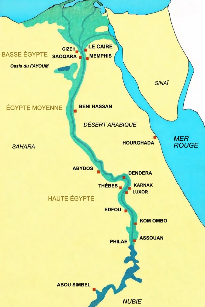 Pour nous permettre de nous situer dans l'espace, voici une carte de l'Égypte ancienne :