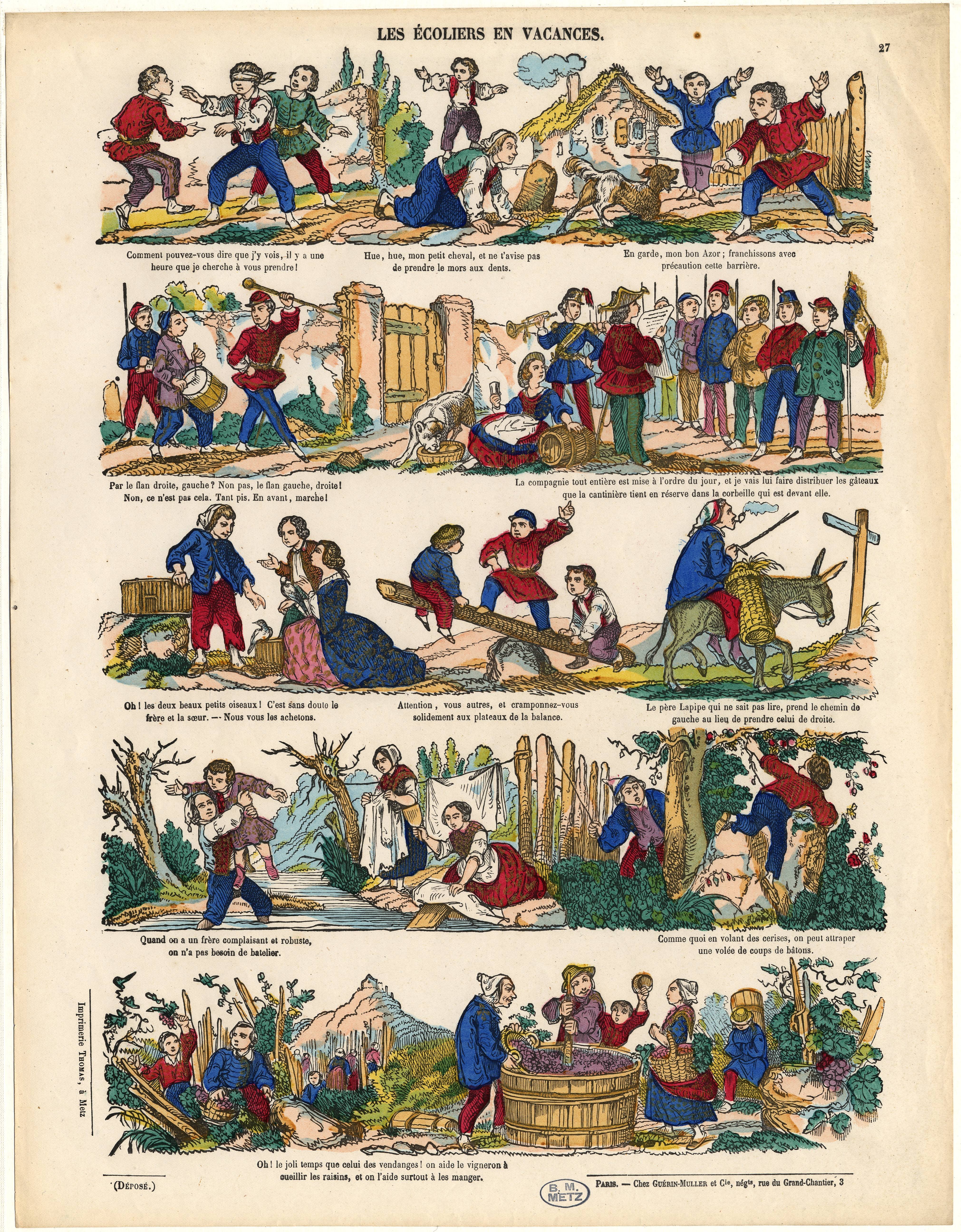 Sacraliser un temps de repos annuel n’a pas toujours été une évidence. En 1800, un arrêté ministériel16 revient sur cette organisation. Il édicte que les enfants « qui se seront bien conduits » pourront obtenir la permission d’aller en vacances tous les deux ans. Les écolâtres (ecclésiastiques chargés de la direction et la surveillance des écoles) soutiennent la mesure : « Les vacances trop fréquentes sont une occasion de dissipation pour les élèves. D’un autre côté, les grands cours d’étude doivent durer, chacun, deux ans. Il serait, par suite, utile, pour les progrès des élèves, qu’ils suivissent ces cours sans interruption et qu’ils ne pussent aller en vacances que tous les deux ans, à la fin d’un de leurs cours. »17 Napoléon revient sur cette mesure en 1803 et rétablit sept semaines de vacances environ.